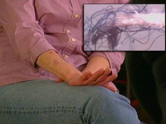 Официальная медицина долгое время не признавала это загадочное заболевание, считая его мифом или помутнением рассудка. Однако симптомы болезни Моргеллонов вполне реальны и осязаемы: у людей чешется все тело, возникает ощущение, будто под кожей кто-то непрерывно ползает, местами появляются нарывы, из которых выходят какие-то волокна и темные крупинки.