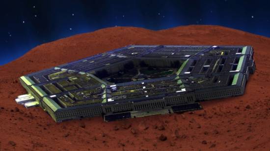 Странный объект, похожий на штаб-квартиру Министерства обороны США, обнаружили уфологи на Марсе. Пятиугольное здание расположено под поверхностью планеты, а на снимках, которые опубликовало NASA, заметна лиш выступающая крыша, пишет UFO Sightings Daily.