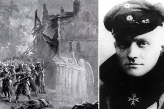 уществует легенда, согласно которой «Красный барон» (справа) сбил неопознанный летающий объект, а легион божественных воинов пришёл на выручку британским солдатам во время сражения с немцами