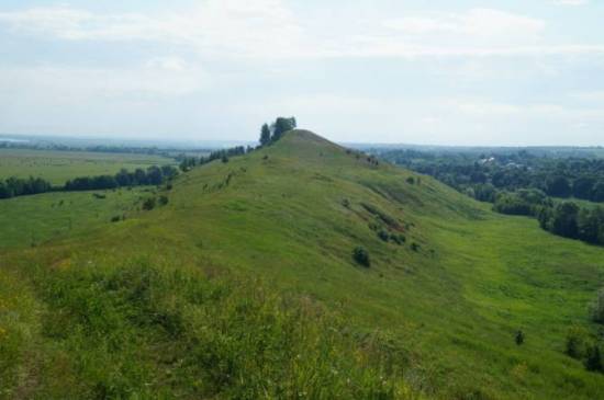 К сожалению, в оригинальной статье не указано точное месторасположение Рогатой горы. На фото гора Дины в Вачском районе Нижегородской области.
