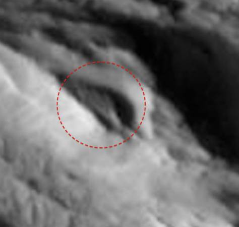 В одном из кратеров ученые разглядели нечто похожее на трубки, выходящие из-под грунта планеты. Как считают уфологи, это могут быть части старых кораблей, погребенных здесь когда-то.