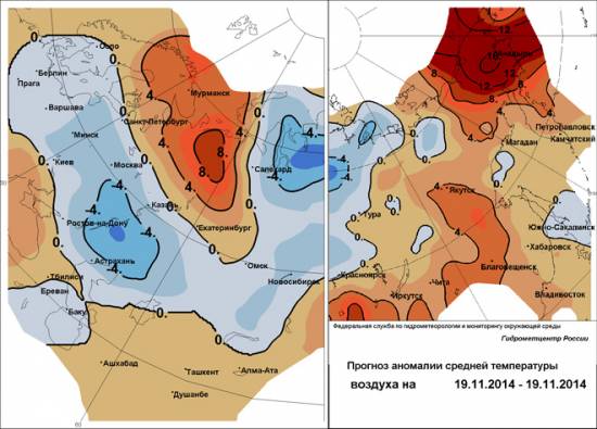 Бывший гренландский антициклон расположился над средней полосой ЕТР, где определяет сухую умеренно морозную погоду. В Центральном округе по ночам отмечается до −5...−11, в Приволжском округе ― до −11...−17. Такая температура более типична для декабря и считается на 3–5 градусов ниже климатической нормы.