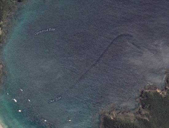 Инженер Пита Уитехира (Pita Witehira), рассматривая свой загородный дом на картах Гугла, заметил необъяснимый след на поверхности океана. Пита обнаружил странное явление возле восточного побережья North Island Новой Зеландии.