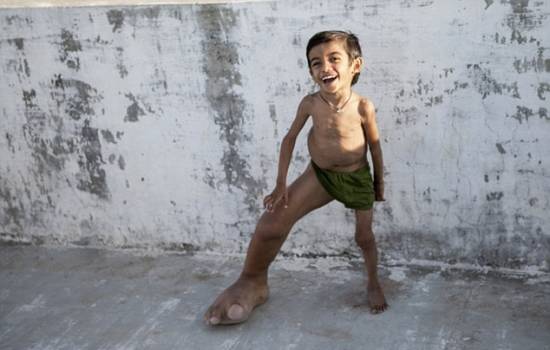 Четырехлетний индиец из Гуджараты в Западной Индии может ходить и даже бегать, но правая нога, весом 5,4 кг имеет аномально большие размеры. За несколько лет его осмотрели более 100 индийских и зарубежных экспертов, которые не смогли определить причину аномалии.
