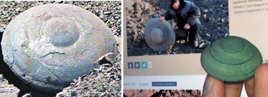 Во время вскрышных работ, проводившихся 31 января 2015 года на разрабатываемом участке Караканскго угольного разреза "Моховский" (Беловский район Кемеровской области) горным мастером Артуром Пресняковым был обнаружен странный округлый диск. По словам горняка, когда в забое показался необычный предмет, он сначала подумал, что это чей-то розыгрыш. Когда вместе с машинистом бульдозера очистили находку от наслоений грязи, то увидели, что она представляет собой правильную сферу с надстройкой. Как сообщили в пресс-службе "Кузбассразрезугля", камень почти идеальной круглой формы и больше всего напоминает хрестоматийную "летающую тарелку". Позже угольная компания перевезла диск для экспонирования в музей.
