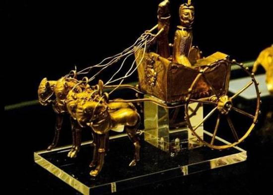 Великолепна также маленькая золотая колесница. В неё впряжены четыре лошади, возница стоит, а важный господин сидит в ней. Всё разукрашено богатой резьбой, всюду золотые кружева, шарики. На сидящем – длинное платье, на голове шапка с золотой ленточкой. На вознице тоже шапка и короткая туника с поясом. Среди сокровищ амударьинского клада есть и другие колесницы. Все они – ценнейшие произведения искусства. Всего 177 различных украшений и 1 300 монет попали после всевозможных злоключений в руки учёных и стали доступны для обозрения.
