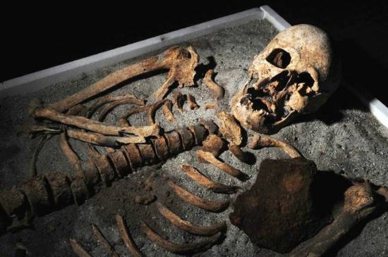 Mirusio žmogaus kaukolė buvo suskaldyta, o kairėje pusėje tarp šonkaulių rastas metalinis strypas. Manoma, kad kūnas – vidutinio amžiaus vyro, kuriam beveik kilogramą sveriantis strypas suvarytas į krūtinę jau po mirties. Be to, nukirsta dalis jo kairiosios kojos. Tyrėjai teigia, kad vietos žmonės tikėjo, jog šis vyras buvo vampyras – strypas ir kojos nupjovimas esą turėjo jį sustabdyti nuo prisikėlimo.