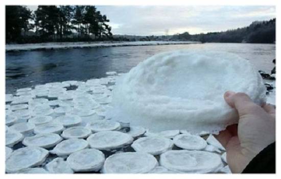 Manoma, kad šie "ledo blynai" susiformavo per naktį, kai temperatūra nukrinta žemiau nulio, prieš jiems susijungus kartu, liesdami vienas kitą suformavo tokią apvalią formą.