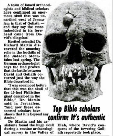 Archeologiniai tyrimai parodė, jog, visų pirma, sutapo rastų griaučių dydis, paminėtas Biblijoje; antra, radinio vieta atitinka Dovydo ir Galijoto kovos vietovę; trečia, akmuo milžino kaktoje visiškai atitinka Biblijos aprašytą Galijoto žūties priežastį; ketvirta, galva buvo atskirta nuo kūno, kas taip pat sutinka su Biblijos pranešimu; ir pagaliau, penkta, po ilgų laboratorinių tyrimų buvo nustatyta, jog kaulų amžius yra maždaug 2900 – 3000 metų, kas taip pat atitiko Biblijos aprašytą šio mūšio chronologiją (XX amžiaus paslaptys. Nr. 6 (39). 2000. Kovas). Istorija byloja, kad senovėje mūsų žemėje gyveno ištisos milžinų gentys.