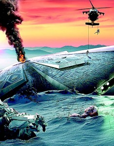 lūnsparnis, du sunkvežimiai, sanitarinis automobilis ir trys kariškių automobiliai. Visi žmonės rinko nuolaužas. Viename sunkvežimyje jau gulėjo maždaug pusės mikroautobuso dydžio NSO nuolauža. Ore jautėsi stiprus amoniako kvapas.