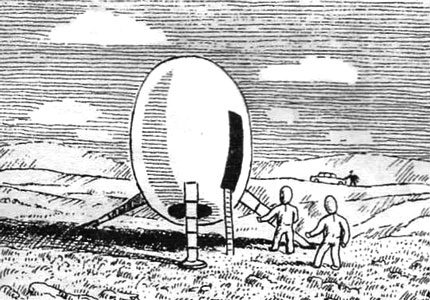 Tik iš trečio kartojam pavyko užvažiuoti ant stačios įkalnės, bet nuo ten viskas atsivėrė kaip ant delno. Policininkas išvydo mažėjančią liepsną, kuri, atrodo, krito į kanjoną. Riaumojantis garsas pasidarė žemesnis ir visai nutilo. Dingo ir liepsna. Nuo šlaito viršaus Zamora pamatė į kiaušinį panašų laivą, kurį iš pradžių palaikė vandalų apverstu automobiliu. Jo akiniai viršuje buvo su apsauginiais rėmeliais nuo saulės, bet saulė kabojo jau žemai, o iš automobilio vidaus buvo sunku nustatyti, kas tai yra.