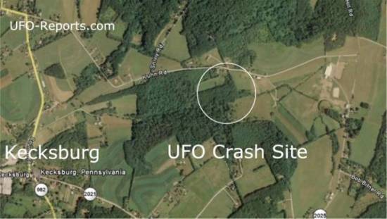 Kažkokio stambaus objekto ir jo nuolaužų kritimą matė beveik visi nedidelio Keksburgo miestelio, esančio už 30-ies mylių nuo Pitsburgo (Pensilvanijos valstija), gyventojai. Dešimtmetis berniukas iš Keksburgo pasakojo, kad matė, kaip kažkoks objektas nusileido miške. Jo mama matė, kad iš to taško miške į dangų pakilo mėlyni dūmai. Ji apie incidentą pranešė valdžios atstovams ir vietinio radijo korespondentams.