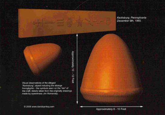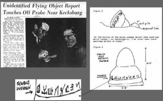 Kiti liudininkai pasakojo apie stiprią vibraciją ir duslų smūgį, kai objektas nukrito į mišką. Keletas gaisrininkų iš Keksburgo atvyko į kritimo (ar nusileidimo) vietą, kurie nežinomą objektą apibūdino taip: „Neaišku, kaip apibūdinti šį objektą, tačiau jis buvo didžiulės gilės, dydžiu primenančios vidutinio dydžio automobilį, formos. Objektas buvo apjuostas metaliniu ratlankiu su ženklais, panašiais į egiptiečių hieroglifus“.