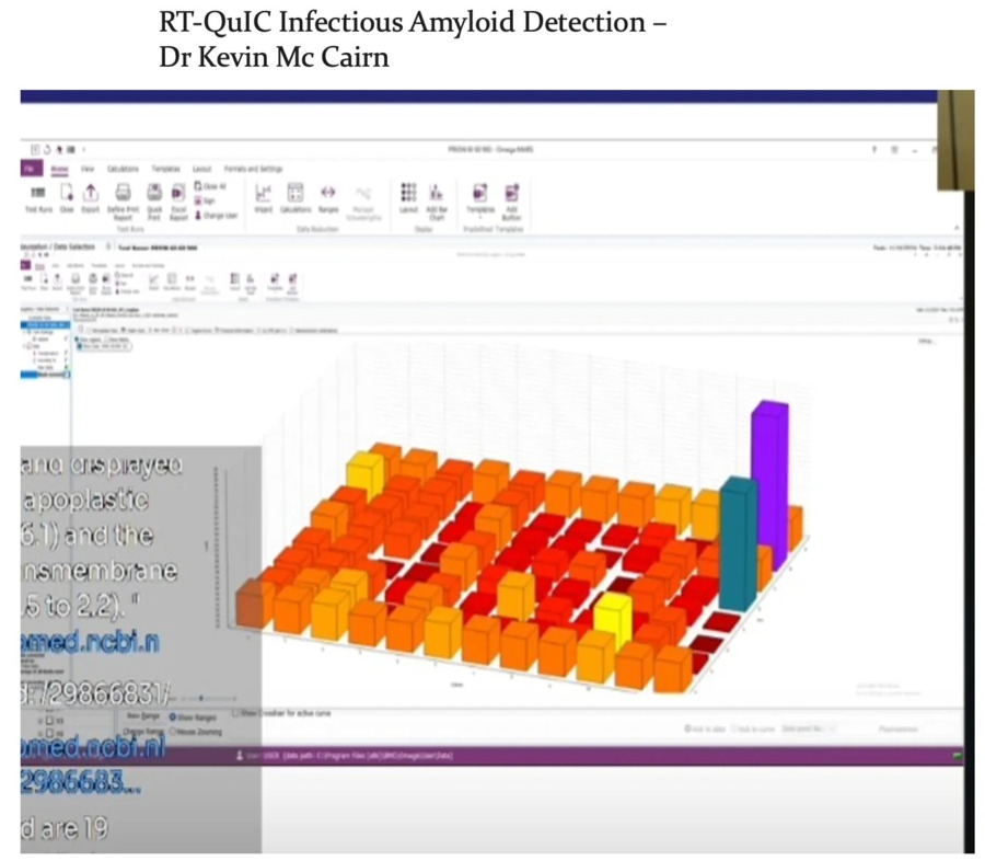- RT-QuIC (реальное время, индуцированное преобразование) показал, что сгустки не только содержат амилоид, но и могут быть инфекционными амилоидами, что означает, что они могут распространять неправильное сворачивание в окружающих белках: