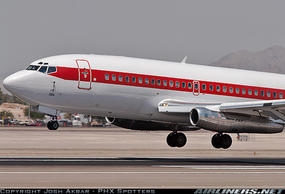 The flights Knapp is tweeting about are referred to as “Janet Airlines.” These are a fleet of unmarked Boeing 737s managed by government contractor EG&G that fly out of McCarren International airport in Las Vegas to the Area 51 facilities near the Groom Lake dry lakebed in the U.S. military’s Nevada Test and Training Range. These flights shuttle employees at the top secret facilities back and forth from Las Vegas on a daily basis. They are noted for their one red stripe down the fuselage.