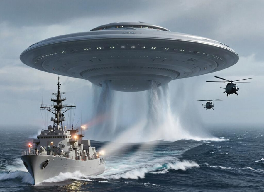 Художественное изображение неопознанного подводного объекта, вдохновлённое сообщениями военных о высокоскоростных НЛО.