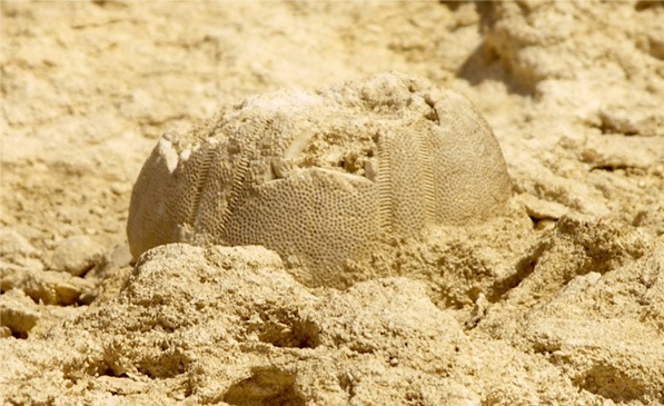 «Во время одной из документальных съемок древнего побережья я чуть не споткнулся о блок второго уровня храма», - пишет Эль-Морси в статье, опубликованной на сайте Gigal Research. «К моему удивлению, бугорок на верхней поверхности глыбы, о который я чуть не споткнулся, на самом деле был скелетом ископаемого существа, похожего на эхиноида (морского ежа) - морских существ, обитающих на относительно мелководье».