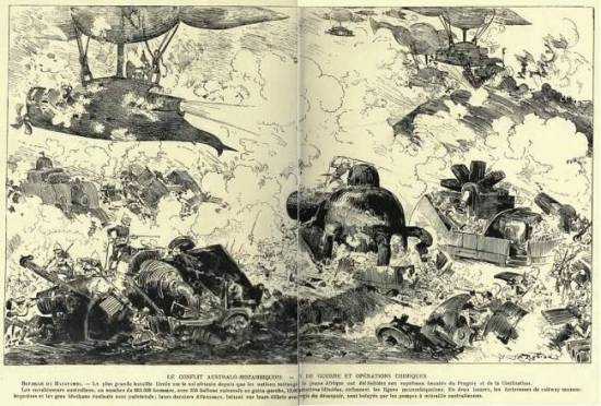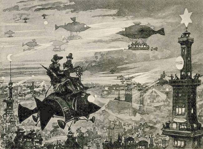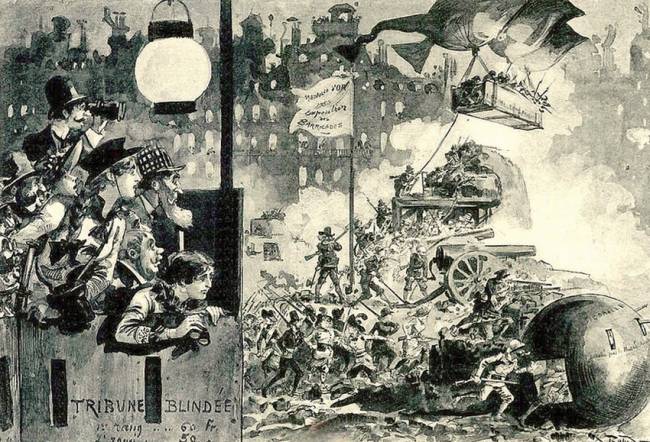 Так писал Альбер Робида более ста лет назад. Попутно назовём некоторые другие его книги: «Война в XX веке», «Париж на перекрёстке столетий» (история Парижа в рисунках), «Путешествия в страну колбасников» (сатира на германский милитаризм). Его последний научно-фантастический роман «Часы минувших веков» (о последствиях ядерной войны) был переведён на русский язык и вышел в России в 1904 году.