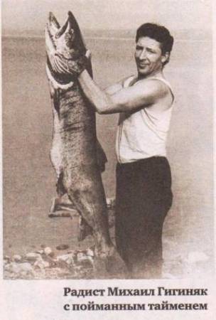 Конечно, можно предположить, что людей пугали гигантские рыбы. О том, что в озере такие водятся, знали все. Говорят, однажды там поймали тайменя весом около ста килограммов! Да я и сам был свидетелем, как наш радист Михаил Гигиняк вытащил из воды тайменя, который по весу был немного легче, чем сам рыбак. Я даже сфотографировал этот удачный улов. И все же небылицы ходили явно не про этих рыб.