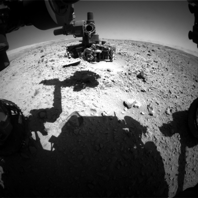 НЛО появился прямо по курсу "Любопытства" - 5 января 2014 года (504 марсианский день) в 23 часа,26 минут 37 секунд его запечатлела камера, находящаяся спереди. На снимке, выложенном на официальном сайте НАСА, объект расположен чуть справа и выглядит светлым конусом. Энтузиасты, на днях обнаружившие его, не сомневаются, что это пришельцы летят по марсианскому небу. То есть, инопланетяне. И не просто летят, а взлетают. Поскольку у НЛО, если его увеличить, заметен хвост. И направлен он вниз. Стало быть сам объект поднимается.