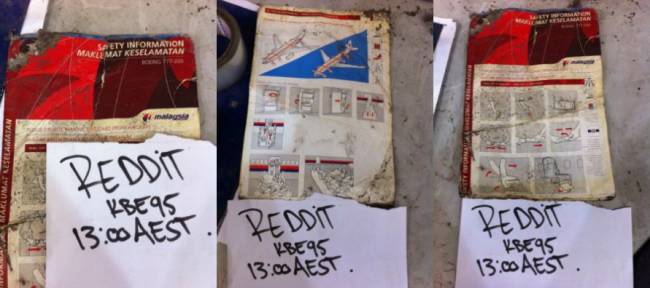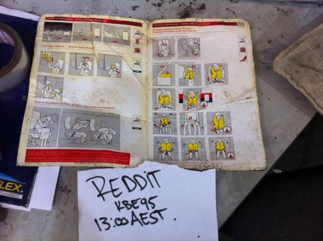 В ночь на четверг пользователь с псевдонимом KBE95 опубликовал фотографию потрёпанной бортовой инструкции Boeing 777-200 с комментарием «Вот что мой друг обнаружил сегодня на работе в Австралии». Публикация быстро стала одной из главных тем сайта, спровоцировав оживлённую дискуссию.