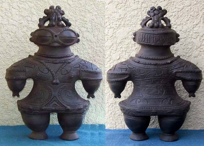 Собственно, слово «догу» в переводе с японского означает «глиняная кукла». И она с головы до пят закрыта необычным одеянием. Вид у догу настолько странный, что увидевший их впервые тотчас восклицает: настоящий космический скафандр!