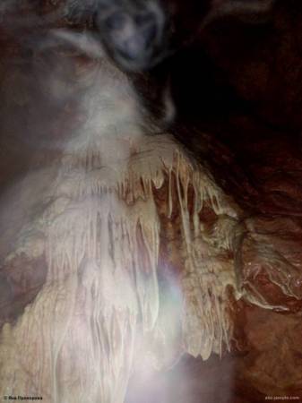 Сначала люди слышали его голос, затем наступила тишина. На божий свет он уже больше не появился. Через много лет именно по этому провалу, переходящему в целый каскад колодцев, спелеологи впервые спустились в подземную систему, состоящую из громадных залов и узких галерей, покрытых удивительными по красоте каменными натеками. Когда число спелеологических групп, посетивших Новоафонскую пещеру, перевалило за пару десятков, среди спелеологов пошли слухи о "белом спелеологе", охраняющем ее красоты от разграбления. Члены одной московской группы (в которую, признаюсь, входил и я сам) рассказывают, что сутки столбили дорогу и в конце концов разбили лагерь в Обвальном зале Новоафонской пещеры.