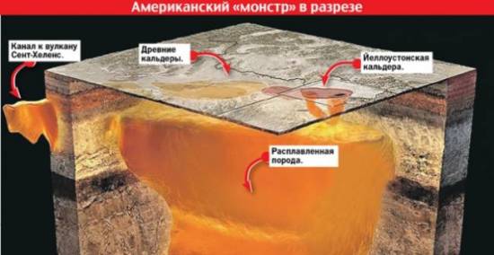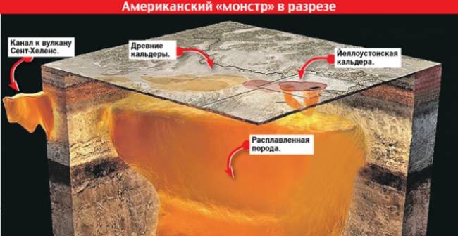 К кальдере может подключиться гора Сент-Хеленс - действующий вулкан, расположенный на западе США в 88 километрах от Портленда - главного города штата Орегон. По данным зондирования, которое провел Грэхем Хилл из Новозеландского института земных и ядерных исследований, и под горой Сент-Хеленс находятся огромные полости расплавленной породы, которые тянутся в одну сторону на 50 километров, в другую - на 70. С относительно узким каналом, который сейчас идет из недр к вулкану, соединены еще несколько. И, скорее всего, система простирается до Йеллоустонской кальдеры.