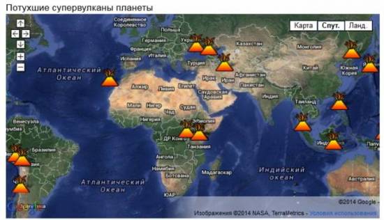 Просмотреть Потухшие супервулканы планеты на карте большего размера