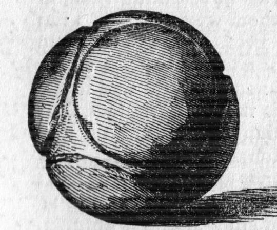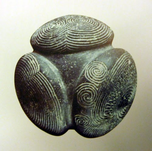 Не менее интересный камень был найден в Абердиншире, его диаметр приблизительно три дюйма (около восьми сантиметров). На нем вырезаны три рельефные круглые «шапочки», на которых нанесены спиральные узоры, похожие на символы. Его сделали в период между 2500 и 1900 годами до нашей эры.