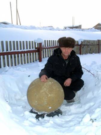 Гигантские каменные шары неизвестного происхождения обнаружены в Усть-Илимском районе (Иркутская область) рабочими Жеронского угольного разреза. Как рассказывают многочисленные очевидцы, летом 2008 года, при снятии верхнего слоя земли экскаваторным ковшом в стене вдоль борта, как в яичной ячейке, торчали шаровидные камни. При повторном срезе земли «мячи» выкатились один за другим.
