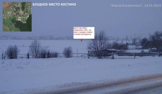 12 января участник группы "Киров-Космопоиск" А. Щеглов совершил разведывательную поездку на место, с которым может быть связано это аномальное явление. Исследователь также уточнил у непосредственного очевидца, который и сообщил о "пространственном переносе", обстоятельства произошедшего.