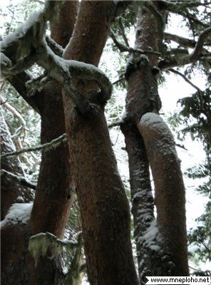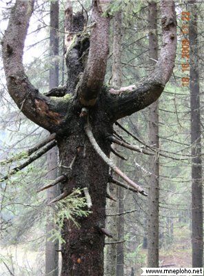 В тех местах, где растут скрученные деревья, видны едва заметные холмики чьих-то захоронений. По одной версии, это могилы древних вогулов, так раньше называли народность манси. По другой, это следы ям-землянок, в которых жила белоглазая чудь, мифический народ, якобы осаждавший Иерусалим при царе Соломоне. Скрываясь от преследования, чудь ушла на Север, где поселилась в потаённых лесных чащобах.