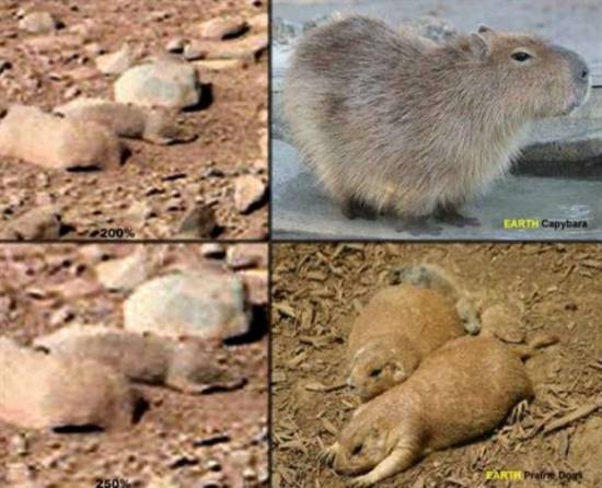 Ниже показано сравнение марсианского животного с земными: луговой собачкой (внизу справа) и капибарою (вверху справа).
