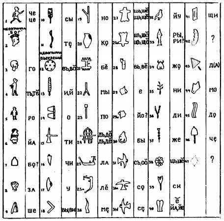Знаки Фестского диска и их фонетические значения по Гриневичу