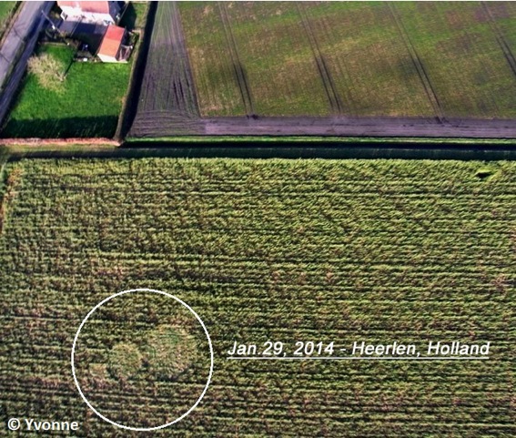Первая пиктограмма нового года была обнаружена на травяном покрове 29 января в Голландии, на поле неподалеку от дома медиума Роберта ван ден Брока. Сведения об этом открытии поступили от известной на Западе исследовательницы феномена "кругов на полях" Нэнси Талбот.
