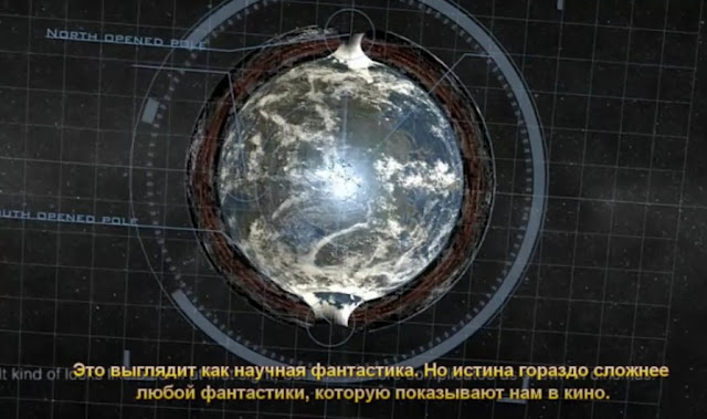Придя в себя, он вдруг понял, что люди живут на внутренней поверхности некой сферы, внутри которой светит искусственное Солнце, созданное древними существами. Звезды и прочие астрономические объекты - следствие преломления его света, а земное притяжение - это лишь центробежные силы, возникающие при вращении сферы.