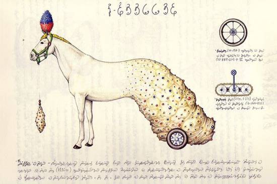 В прикрепленном к манускрипту сопроводительном письме, датированном 1666 годом, говорилось, что когда-то (вероятно, в конце XVI века) Рудольф Второй, император Священной Римской империи, выкупил ее за два килограмма золота. Адресатом письма был Афанасий Кирхер: его, самого знаменитого ученого-иезуита, просили помочь с расшифровкой рукописи. 240 страниц пергамента исписаны текстом на неизвестном языке и проиллюстрированы изображениями странных трав и невозможных животных.