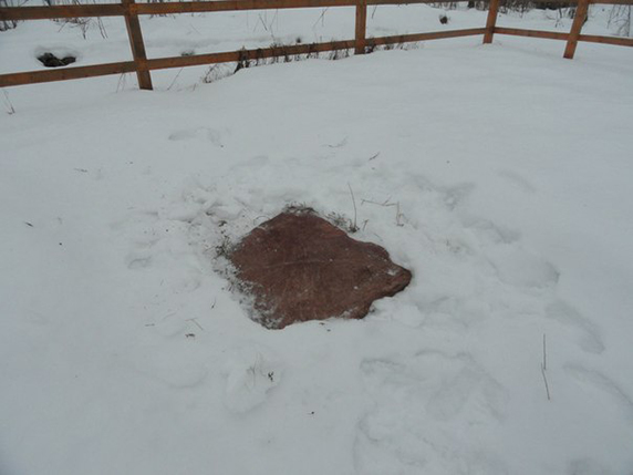 - Это древний артефакт с поклонного места Чуди, на которое много веков назад водрузили церковь. Поездку на чудо-камень мы планировали около полугода - дожидались зимы. Сведения подтвердились. На ярко-красном камне снег действительно тает. Более того, мы обнаружили на камне стёршиеся петроглифы – косой крест, изображение шамана и еще какие-то знаки. – Владимир показывает подтверждающую видеозапись: среди снега лежит обычный плоский камень, к нему не ведут следы, однако на объекте ни снежинки. - Что касается церкви, то она действительно стояла на древнем Чудском святилище. Если встать на горячий камень, в ногах ощущается сильное тепло, однако на ощупь он холодный.
