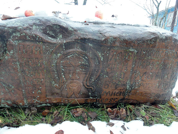 Остальные камни языческого святилища со средневековым граффити на христианскую тему (уникальный памятник археологии) лежат во дворе у одного из местных жителей. Их перетащили во двор церкви, расположенной рядом с домом мужчины по распоряжению его прадеда - церковного настоятеля, ещё летом 1888 года. На огромном валуне выбит лик и надписи. Особенно хорошо они просматриваются зимой, когда с камня счищают снег.
