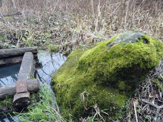 По рассказам местных жителей, камень был положен на слеги, а под ним