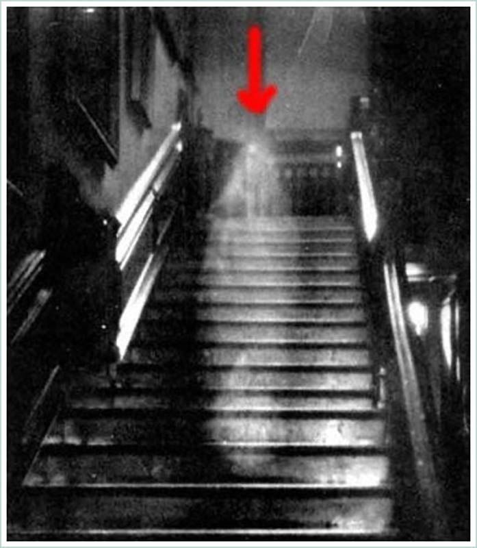 Ральф Харди, пенсионер из Вайт Рока, Британской Колумбии, сделал этот знаменитый снимок 1966. Он намеревался всего лишь снять элегантную спиральную лестницу в секции Дом Королевы – части Национального Морского Музея в Гринвиче. Однако, после проявки на снимке оказалась фигура, которая идет вверх держась обеими руками за перила. Эксперты (в том числе из фирмы Кодак) которые исследовали оригинал негатива пришли к выводу, что с ним не производилось никаких манипуляций. Известно, что в районе лестницы подобное визуальное явление замечали не раз.