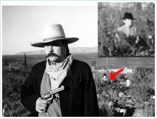 Терри Айк Клэнтон сделал фото своего друга на кладбище Бутхилл. Фото было сделано на черно-белой пленке, так как друг хотел сделать фото в стиле Дикого Запада. Клэнтон отнес пленку для проявки, и был очень удивлен, когда получил снимки. В правом верхнем углу появилось изображение человека в темной шляпе. Судя по высоте фигуры и ракурсу – у человека либо нет ног, либо он стоит на коленях или же… поднимается из под земли.