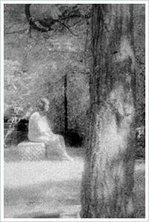 Снимок был сделан в ходе расследования на кладбище Холостяцкая Роща, возле Чикаго Обществом Исследования Привидений (ОИП). 10 августа 1991 года несколько членов ОИП находились на маленьком заброшенном кладбище на окраине лесного заповедника в пригороде Мидлотиана, штат Иллинойс. Кладбище имеет репутацию одного из самых мистических кладбищ в США. Есть сообщения о более чем 100 разных случаев странных феноменов, произошедших здесь: исчезновения, непонятные звуки и видения, тут даже наблюдались светящиеся шары света. После проявки одного из снимков сделанных ОИП, на нем можно увидеть одинокую женщину, сидящую на могильной плите. Части ее тела полупрозрачны, а ее одежда явно старинная.