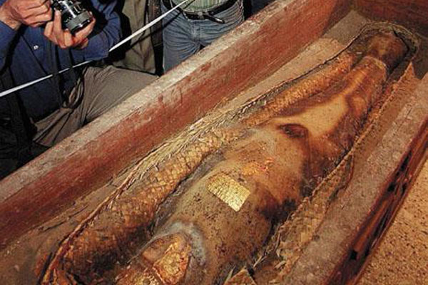 Мумия сохранилась настолько хорошо, что старатели смогли рассмотреть её в мельчайших подробностях: плоский череп, выпуклые глаза с тяжёлыми веками, плоский нос, тонкие губы и широкий рот, коричневая морщинистая кожа… Видны были даже плоские ногти на тонких удлинённых пальцах.