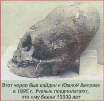 Возраст черепа точно не установлен, хотя он может быть старше десяти тысяч лет, то есть относится к очень отдаленной доисторической эпохе. Форма черепа действительно совершенно необычная, нечеловеческая, но вряд ли по одной только форме можно определить, что он наверняка принадлежал инопланетянину. У некоторых племен существовал обычай туго бинтовать голову младенца, чтобы добиться определенной деформации черепа. Вполне возможно, что этот «неправильный» череп тоже был намеренно изуродован в раннем возрасте. Нельзя не принимать во внимание возможности врожденного уродства из-за генетических отклонений или вследствие внутриутробного повреждения. И все-таки вопрос остается открытым. Ископаемые черепа странной формы не принадлежали никакому животному и сильно отличаются от черепов людей. Чьи же они?