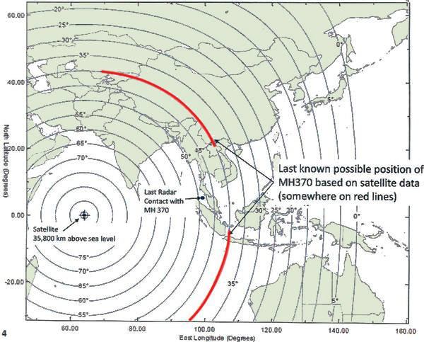 Но анализ свойств сигнала сначала показал, что есть смысл говорить только о двух дугах: над Азией и Индийским океаном. Потом северная дуга тоже была исключена из рассмотрения. Осталась только южная. И с учетом времени последнего «пинга» была определена область поисков. Кстати, ее площадь больше площади Ирландии. Такова погрешность оценки, когда цель едва слышно. Но ее должно было быть видно...