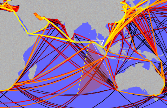 Важно еще обратить внимание на то, что и трассы морских судов отнюдь не случайны. Они рассчитаны так, чтобы оптимизировать сроки прибытия и расход топлива. Морские пути, как и воздушные, невидимы, но вполне реальны, и в случае угона самолета вполне возможно проложить маршрут так, чтобы не пересекаться с другими транспортными средствами. Но спутники-то на что?
