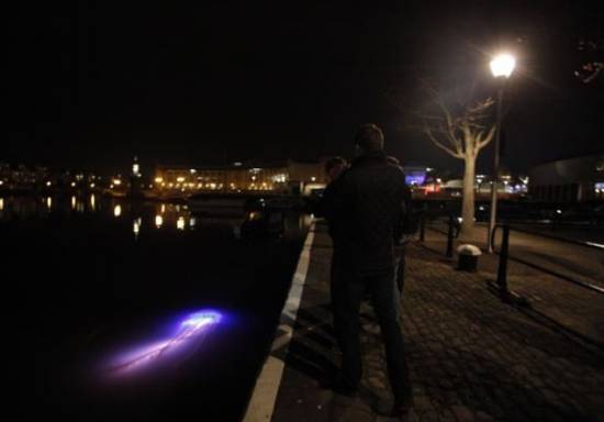 И вот на днях тайна раскрылась. Оказалось, что объект искусственный. Словом, модель вроде подводной лодки, оснащенная светодиодами. Изготовлена специально, чтобы дурить людей. Но не просто так, а в ходе новой программы британского телевидения под названием "Happenings". Плодотворная дебютнаяя идея ее такая: без какого-либо предупреждения демонстрировать публике киношные трюки. И снимать реакцию. "Светящийся пришелец" был выпущен в воду в целях продвижения программы. И цель эта реально была достигнута. Надурили.
