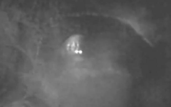 Существо на видео обладает маленькими, но ярко горящими в ночи глазами